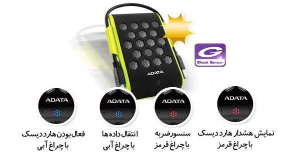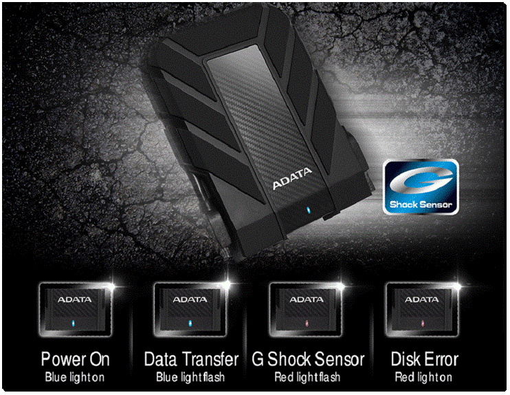 رنگ آبی ثابت: روشن بودن هارددیسک رنگ آبی چشمک‌زن: انتقال داده رنگ قرمز چشمک‌زن: فعال شدن حسگر G Shock رنگ قرمز ثابت: بروز خطا