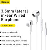 هندزفری اصلی ترین ابزار برای گوش دادن به موسیقی می باشد و به شما این امکان را می دهد تا بتوانید موسیقی مورد علاقه خود را به تنهایی در هر مکانی گوش کنید. شرکت Encok که یکی از زیر مجموعه های کمپانی خود نام Baseus می باشد با ساخت هندزفری سیمی بیسوس H17 باعث شده تا بتوانید به راحتی موسیقی مورد علاقه خود را با کیفیت بالا گوش کنید. این هندزفری از طریق پورت جک 3.5 میلی متری یا AUX به گوشی شما متصل میشود. طراحی هندزفری سیمی بیسوس H17 از پلاستیک مقاوم ABS و TPE ساخته شده و دارای طراحی ساده و زیبای می باشد. این طراحی انعطافپذیری و در عین حال مقاومت کابل را در برابر پارگی، کشش و گره خوردگی تضمین می کند. ابعاد سری های هندزفری بیسوس 30x18x15 میلی متر بوده و دارای وزنی حدود 12 گرم می باشد؛ بعلاوه اندازه سیم این محصول حدود 1.1 متر می باشد. پورت 3.5 میلی متری کانکتور هندزفری سیمی بیسوس H17 جک 3.5 میلی متری یا AUX می باشد. جنس کانکتور این محصول از فلز بوده که محکم و مقاوم می باشد. طراحی سریهای هندزفری سری های هندزفری سیمی بیسوس H17 از نوع نیمه تو گوشی بوده و از جنس پلاستیک ABS ساخته شدهاند. با در نظر گرفتن حالت داخلی گوش این سریها نیز دارای اندکی زاویه میباشند که به خوبی داخل گوش جای میگیرد. این طراحی سبب میشود که صداهای مزاحم اطراف ایزوله شوند و سری هم به خوبی در گوش کیپ شود. همه این عوامل تاثیر بسزایی در بالا رفتن کیفیت صدا و تجربه کاربر خواهند داشت. روی کابل هندزفری بیسوس H17 Encok یک کنترل پنل با سه دکمه قرار داشته (+، o ، -) که می توانید موزیک و مکالمه را با آن کنترل کنید؛ بعلاوه میکروفون این هندزفری نیز درون این کنترل پنل تعبیه شده است. هندزفری بیسوس H17 Encok دارای درایور 14 میلی متری دینامیک میباشد که از لایه های فرکانس بالا، فرکانس متوسط و فرکانس پایین تشکیل شده است.صدای منتقل شده توسط این Coil شفاف و واضح است و برای استفاده روزمره جوابگو خواهد بود. دیافراگم های پلیمری این هندزفری دارای فرکانس سه گانه متعادل و تفکیک صدا مطلوبی می باشند. یک تراشه کدک صوتی با نرخ رمزگشایی بالا از کیفیت صدای بدون افت پشتیبانی می کند. بعلاوه حساسیت این هندزفری 105 دسی بل، آمپدانس آن 32 اهم و بازه فرکانس پاسخ گویی آن از 20 تا 20000 هرتز می باشد.